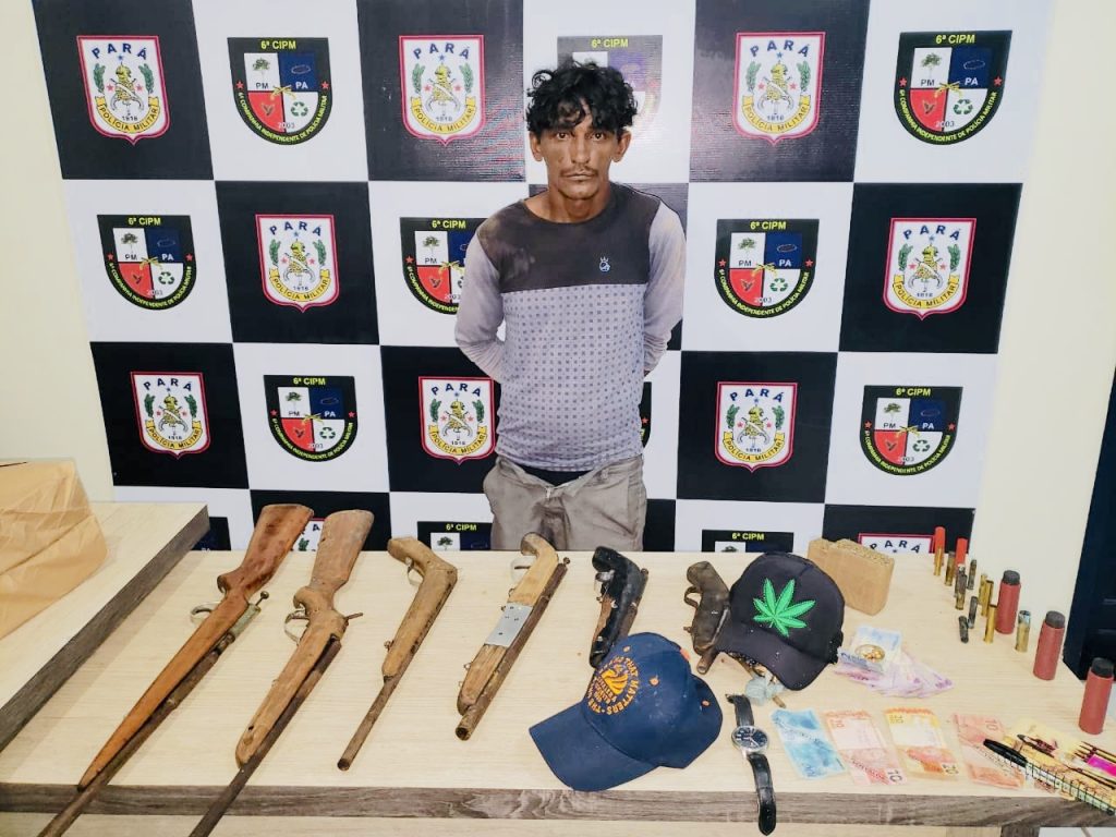 Seis armas de fogo, 500 gramas de maconha, além de 12 cartuchos e r$ 71,00 reais em espécie, foram apreendidos na noite de domingo (17) no Jardim Liberdade, zona rural de Tailândia, nordeste paraense.