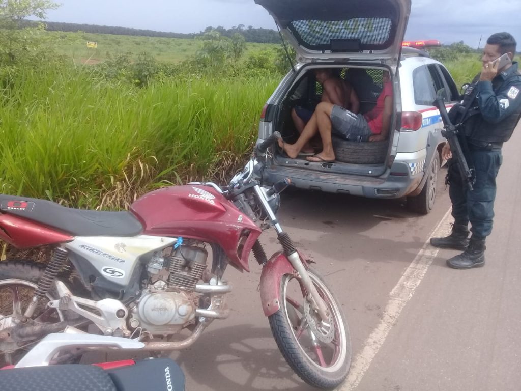 A guarnição do Distrito Palmares foi acionada e se direcionou até o local. Os policiais se depararam com a dupla na PA-150, ao avistarem a viatura da PM, eles tentaram se desfazer do objeto roubado e da arma de fabricação caseira, utilizada no crime.
