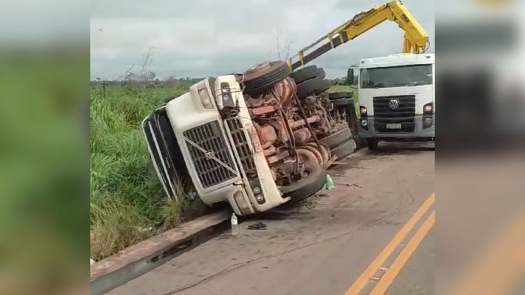 Um caminhão que trafegava na rodovia PA-150 tombou na manhã desta quinta-feira (29), próximo à vila Bom Jesus, em Tailândia, nordeste paraense.