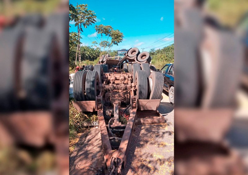 O acidente envolveu uma carreta que transportava soja. O veiculo não tombou, mas o ‘cavalinho’ ficou com os quatro pneus para cima.