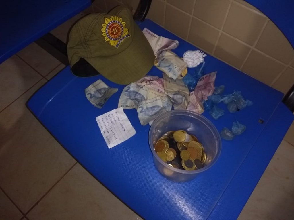 Na residência do casal os PM's encontraram 16 papelotes de maconha, R$ 55,00 reais em espécie, além de varias moedas. Uma moto Honda Pop, ano 2010, cor preta, também foi encontrada no local, ela teria sido comprado por R$ 600 reais.