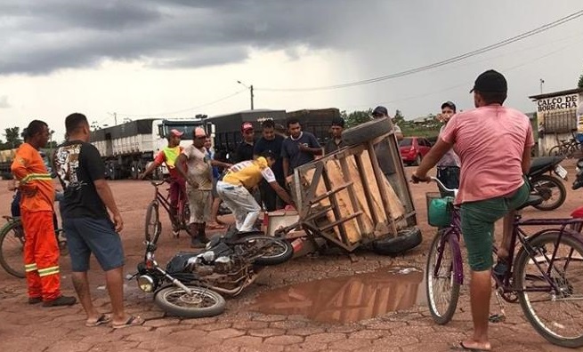 Felizmente o condutor da moto não sofreu ferimentos, embora ele estive com uma carrocinha atrelada a motocicleta.