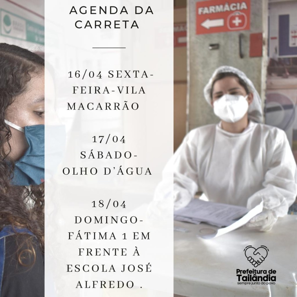Nos dias 16, 17 e 18 de abril a Carreta da Saúde estará realizando atendimentos no município de Tailândia.