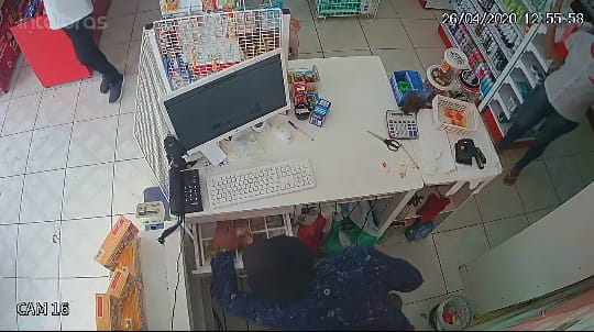 Dois assaltantes entraram em uma farmácia, em Tailândia, nordeste paraense, renderam os funcionários e acabaram roubando dinheiro do local.