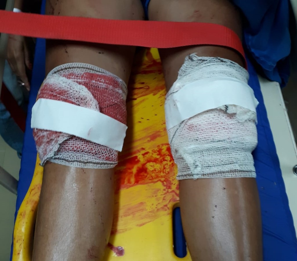 A mulher, que é testemunha ocular do crime, foi atingida com tiros nos joelhos. Ela está internada no Hospital Geral de Tailândia (HGT). O estado de saúde é considerado estável, sem risco de morte.