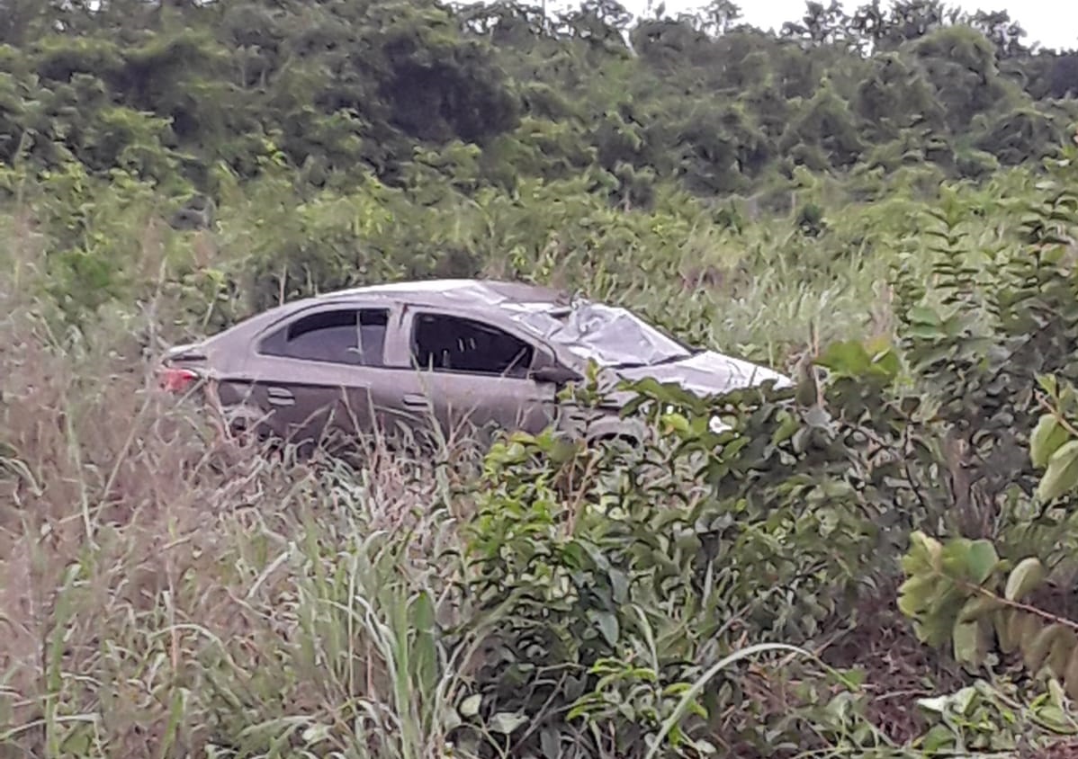 De acordo informações, o carro perdeu o controle após passar sobre um “camaleão” e acabou saindo da rodovia. Quatro pessoas estavam no veículo, três adultos e uma criança, mas ninguém ficou ferido.