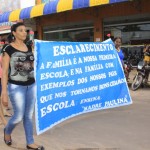 A passeata que se iniciou em frente a escola Socorro Ricarte, culminou na Praça da Prefeitura, com discurso de professores e autoridades do município, como vereadores e a primeira dama, Sunamita Sobral. Nas falas, a ênfase foi dada também ao fim da violência contra mulher.