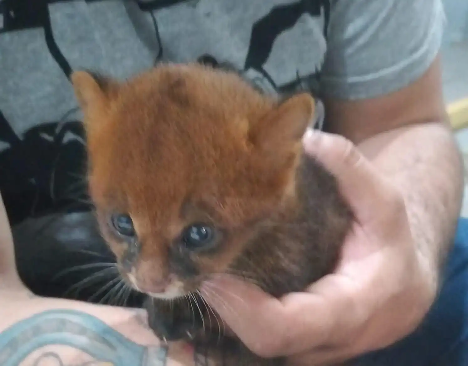 Um filhote de gato-do-mato foi encontrado próximo à sede de uma fazenda em Tailândia, nordeste paraense. A aparição do animal ocorreu na quarta-feira (24).