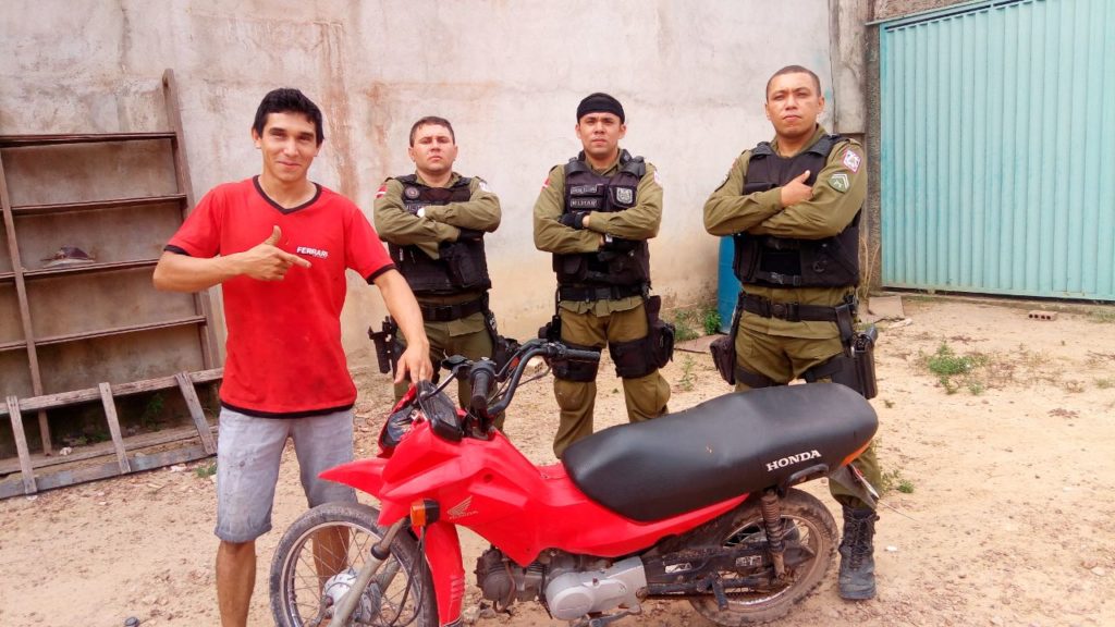 A guarnição de motos da 6ª Companhia Independente de Polícia Militar de Tailândia, composta pelo cabo José, soldados Carvalho e Frazão, em ronda pelo bairro Vila Macarrão, nesta segunda-feira (20), se deparou com uma moto pop abandonada em um terreno baldio, ao verificarem a situação da mesma, constataram que se tratava de uma Pop da cor vermelha, de placa OTB 9253, que teria sido furtada na noite anterior.