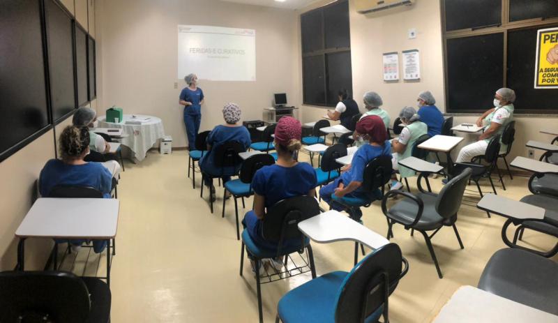 Mais de 80 colaboradores, entre enfermeiros e técnicos de Enfermagem, do Hospital Geral de Tailândia (HGT) passaram por capacitação sobre “ Feridas e curativos, técnicas de limpeza”, dias 25 e 26/02, no auditório da unidade hospitalar. A capacitação que teve o objetivo de prevenir infecções relacionadas à assistência à saúde.