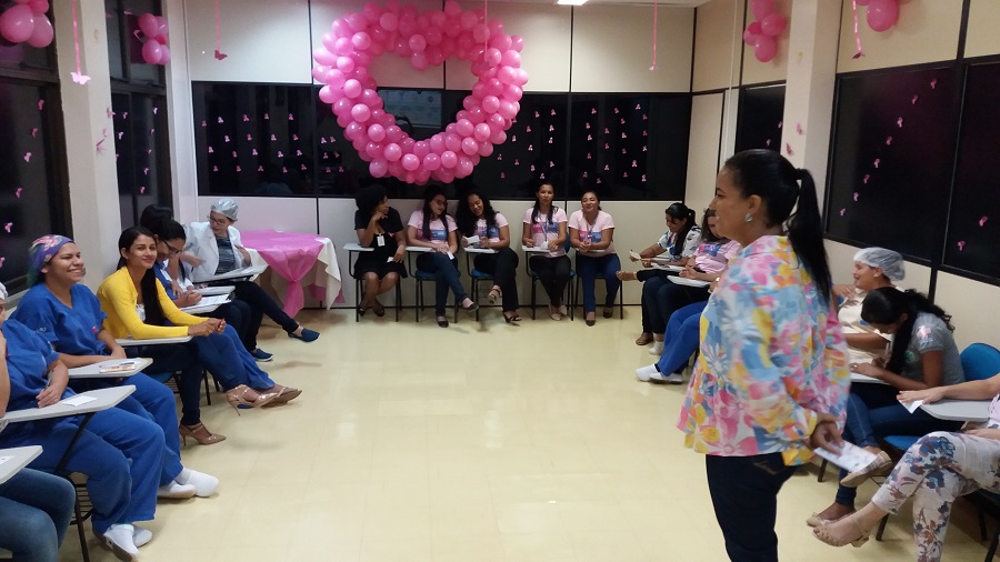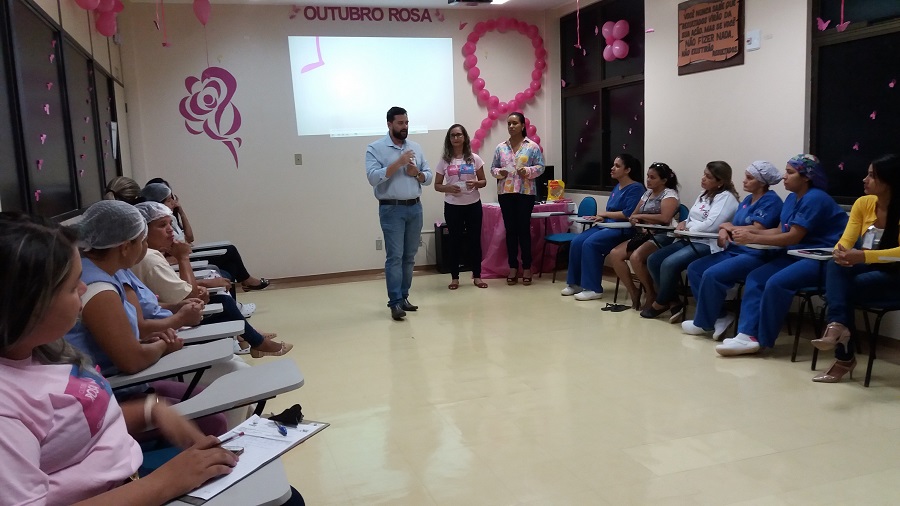 O mais recente evento do “Outubro Rosa” foi realizado dias 19 e 20, no auditório do hospital com uma “Roda de Conversa”, sobre “Prevenção de câncer e útero”. Logo após, os presentes, colaboradores e acompanhantes de usuários, participaram de ginastica Laboral. “Nosso objetivo e despertar nas mulheres o desejo de se prevenir sobre o câncer de mama, e outros tipos da doença”, observou Elizabett. Essa ação foi desenvolvida pela enfermeira, Karla Emanuelle Silva Luz; e Ricardo Oliveira Rodrigues que é auxiliar administrativo do HGT.