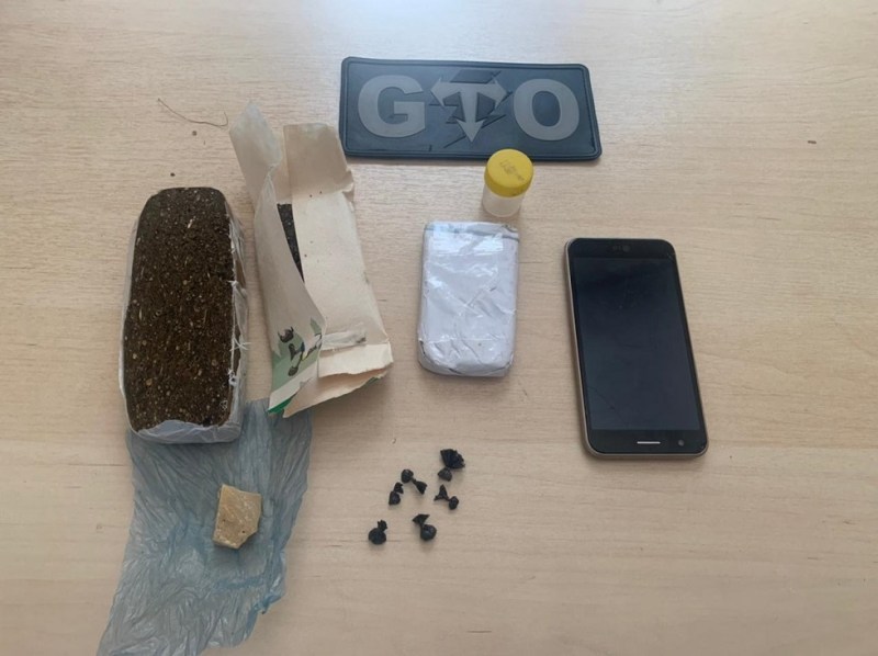 Durante a abordagem os policiais encontraram uma quantidade de maconha prensada e outra parte enrolada em papel, além de uma pedra de oxi.