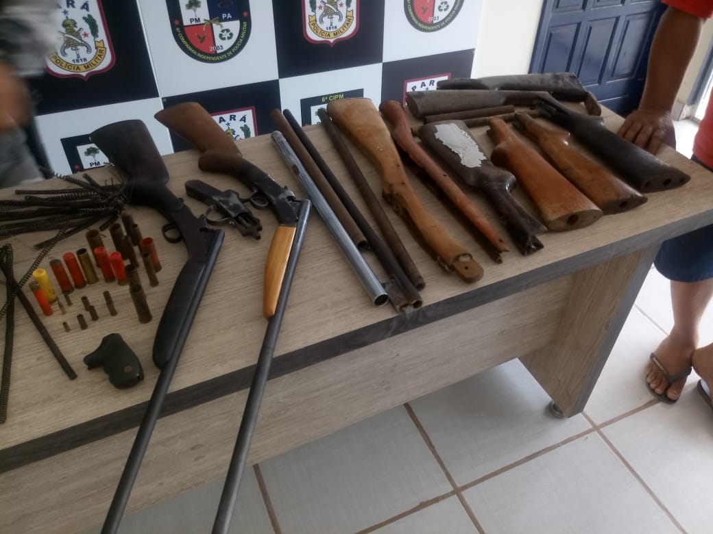 “Os tipos de armas foram de calibre 26 e 28 e armações de armas: cinco canos, cinco armações, mecanismos de funcionamento. As munições encontradas foram de calibres 12, de 32, de 38, muita espoleta, pólvora, molas para fazer o mecanismo. A denúncia é de fabricação e comercialização de armas”, relatou o militar.