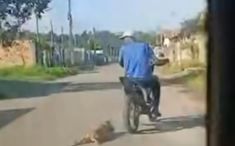 O crime ocorreu quando o suspeito arrastava o animal por uma corrente enquanto conduzia uma motocicleta pelas ruas da cidade.