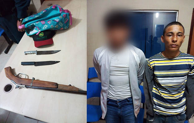 Cássio Henrique dos Santos e o menor de idade foram flagrados com uma arma de fogo, do tipo caseira, e duas facas. Eles foram abordados, por uma guarnição da Polícia Militar, na travessa de Marapanim, depois que as vítimas repassaram à polícia as características dos acusados.