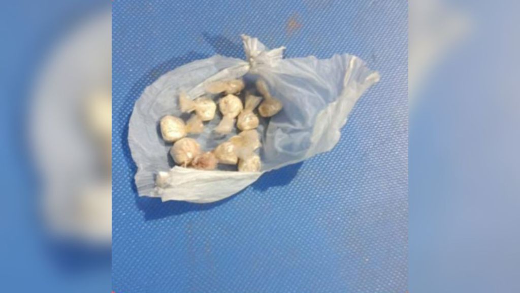 Durante a busca pessoal, os policiais encontraram com Maycon onze (11) pedras da substância entorpecente conhecida como “OXI”, droga altamente tóxica e de grande potencial destrutivo.