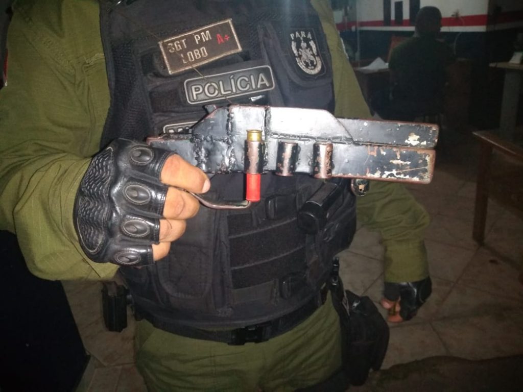 Com eles, os policiais encontraram uma arma de fabricação, municiada com munição 44 e uma de calibre 36, no carregador.