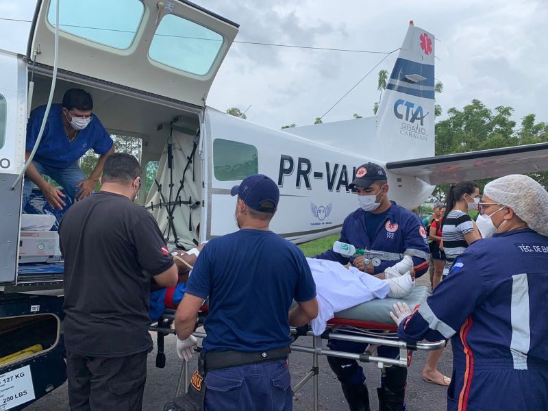 O homem foi socorrido e encaminhado ao Hospital Geral de Tailândia (HGT). Ainda na tarde desta segunda (20), o paciente foi transferido para o hospital Metropolitano, em Ananindeua.