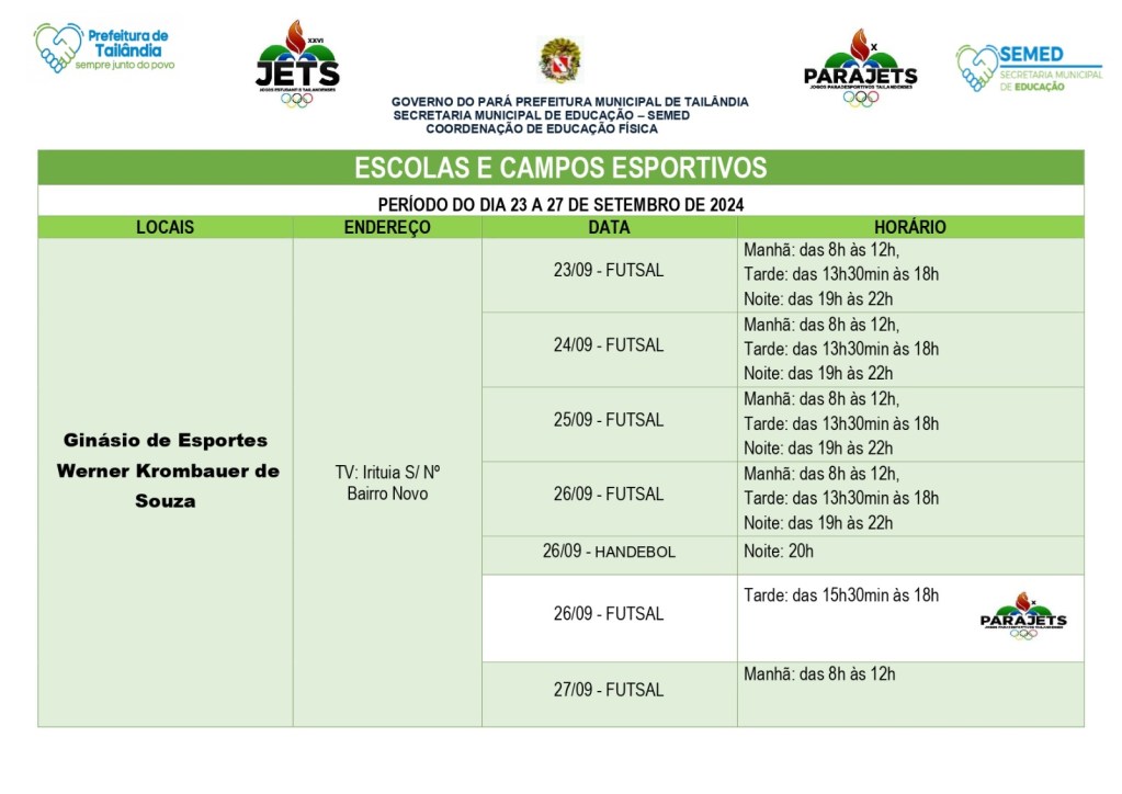 A 26ª edição dos Jogos Estudantis Tailandenses (JET's) foi iniciada no sábado (21), com um show de abertura no Ginásio de Esportes Werner Krombauer. Os dias e locais da programação foram divulgados pela Secretaria de Educação.