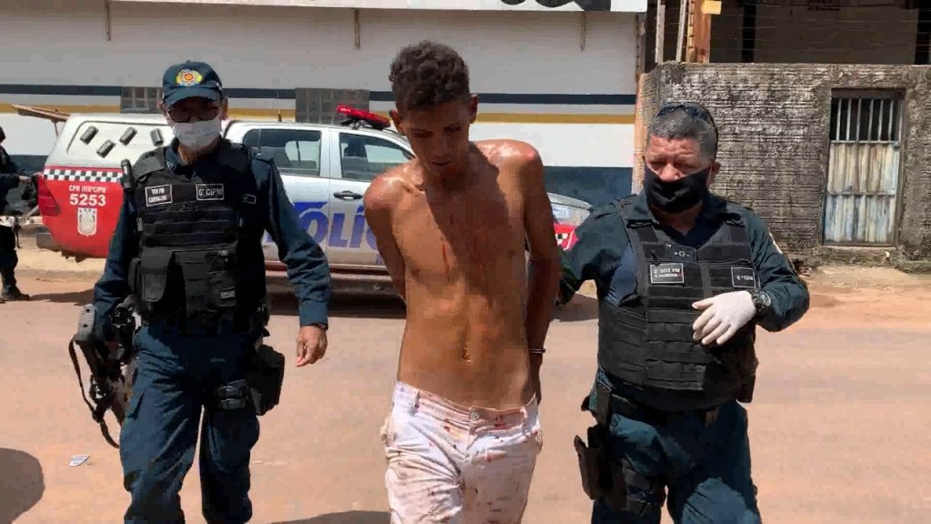 Já hoje pela manhã, ainda bastante transtornado, o Marcus pulou o muro da casa da avó e agrediu a idosa. Ele fugiu, mas foi pego ainda pela manhã. Ao ser conduzido para delegacia, ele chutou um sargento da PM, mas foi contido.