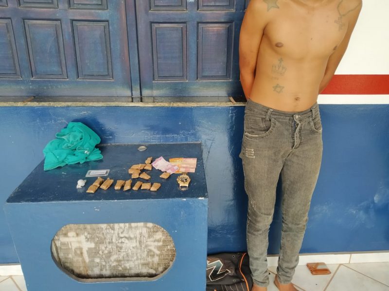 A apreensão aconteceu após uma denúncia anônima. De acordo com as informações repassadas a PM, uma pessoa estaria há mais de uma semana comercializando droga no local.