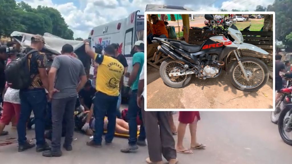 O veículo que a mulher pilotava está estacionado no ponto dos mototaxistas, em frente a Caixa Econômica Federal, aguardando retirada de um familiar.