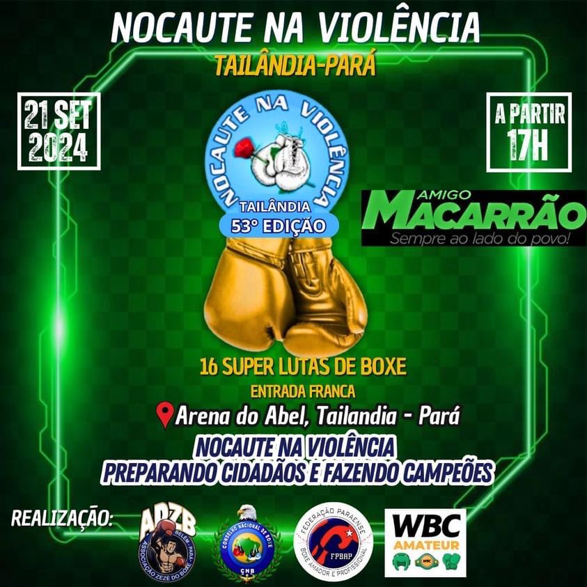 No próximo sábado, dia 21, Tailândia se transformará na capital nacional do boxe. O projeto Nocaute na Violência chega à edição de número 53, sediado no município. O evento vai acontecer na Arena do Abel, a partir das 17h com entrada gratuita.