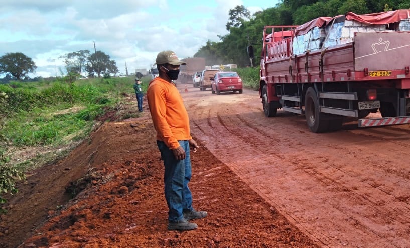 A cratera aberta por conta da chuva, impediu a passagem de caminhões, ônibus e até de motocicletas. Muitos só conseguiram seguir viagem, por uma estrada particular da Agropalma.