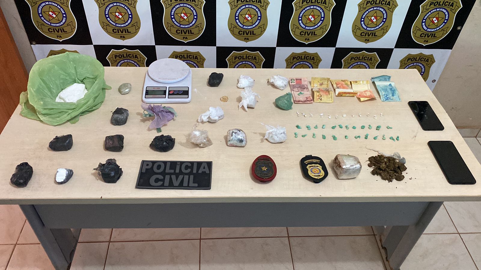 Foram apreendidos pela polícia cocaína, oxi, maconha, uma quantia em dinheiro, além de aparelhos celulares.