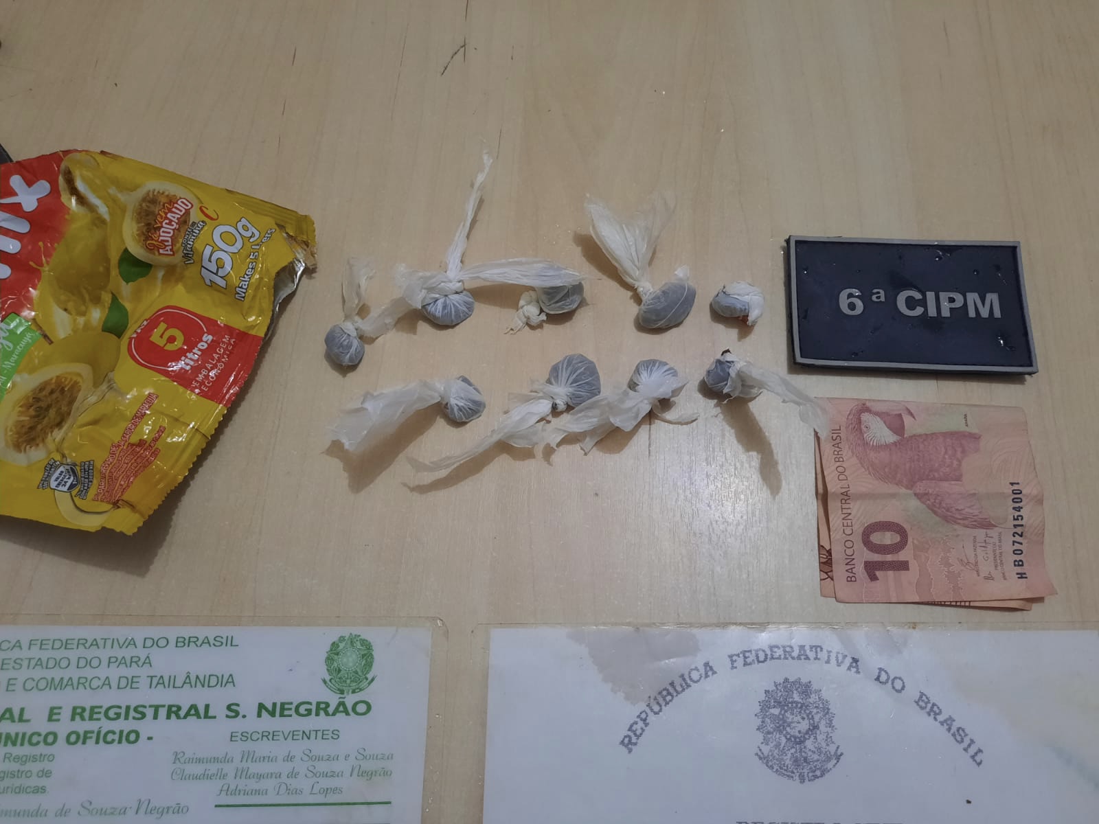 Seis papelotes de maconha foram encontrados em poder deles. Que foram encaminhados à delegacia de polícia para os procedimentos cabíveis.