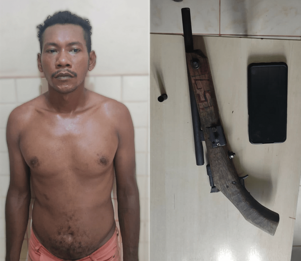 O caso aconteceu por volta de meio dia de ontem (11), na travessa Breves. Raimundo dos Santos foi preso com uma arma de fabricação caseira, escrito 157, referência ao artigo do Código Penal que descreve o crime de roubo.