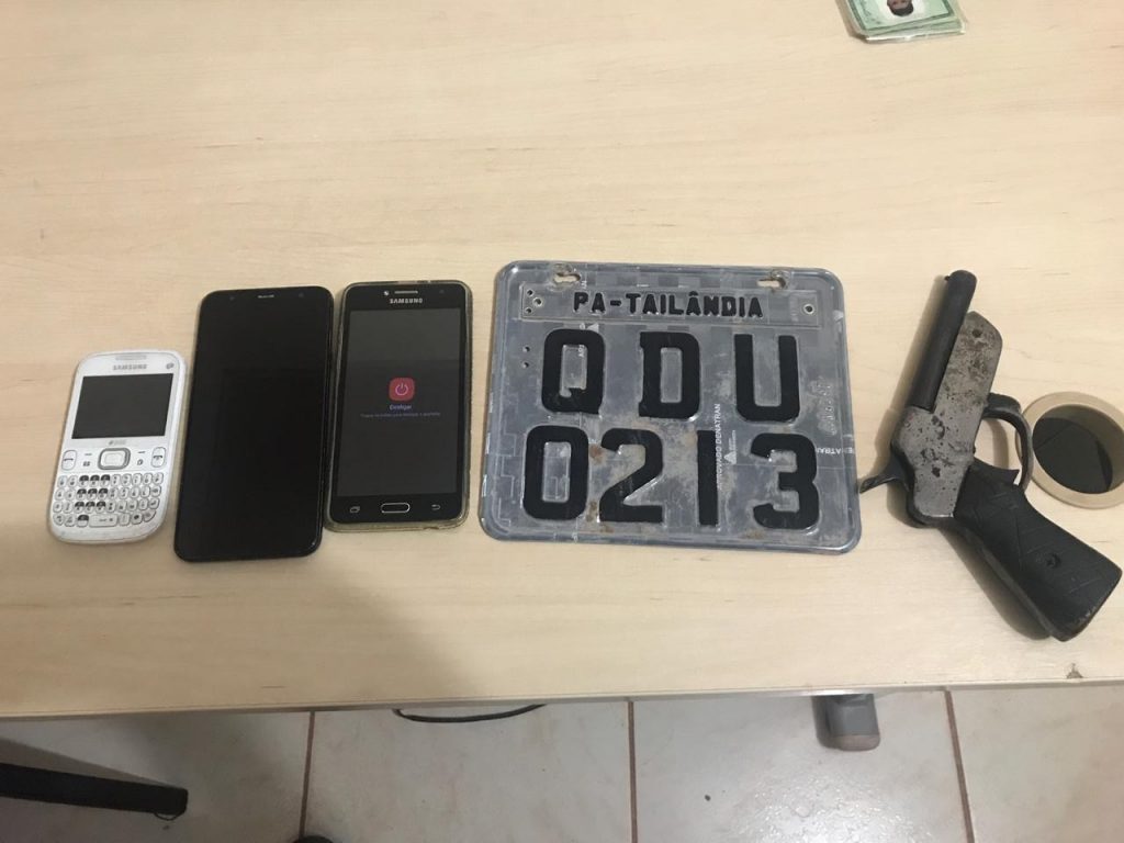 Com os dois, os PM's recuperaram três celulares, frutos dos roubos, uma arma de fogo, calibre 22, usada para cometer os assaltos e uma moto Pop, de cor vermelha, também usada para cometer os crimes.