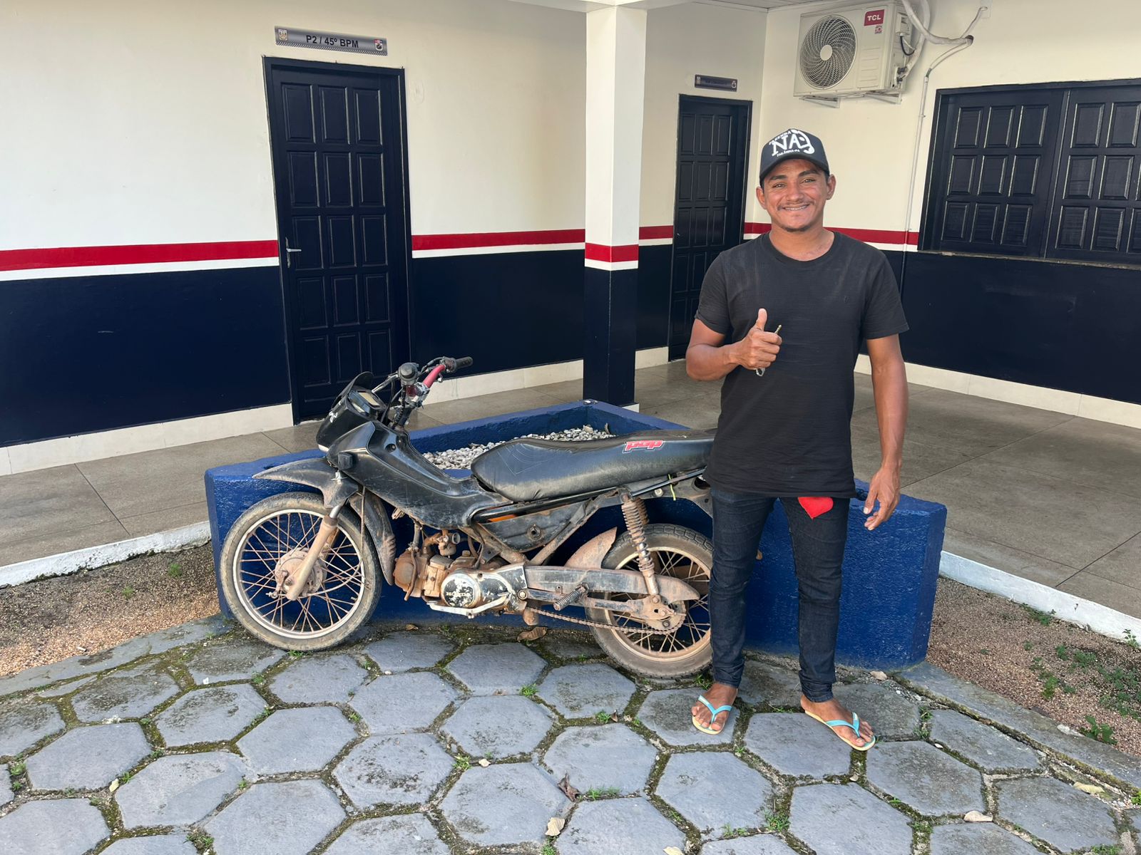 Após a verificação, confirmou-se que se tratava do veículo furtado no evento. A motocicleta foi conduzida ao quartel do 45º BPM. Como o registro oficial no sistema nacional de furtos e roubos ainda estava em processamento, a PM realizou a entrega direta ao proprietário