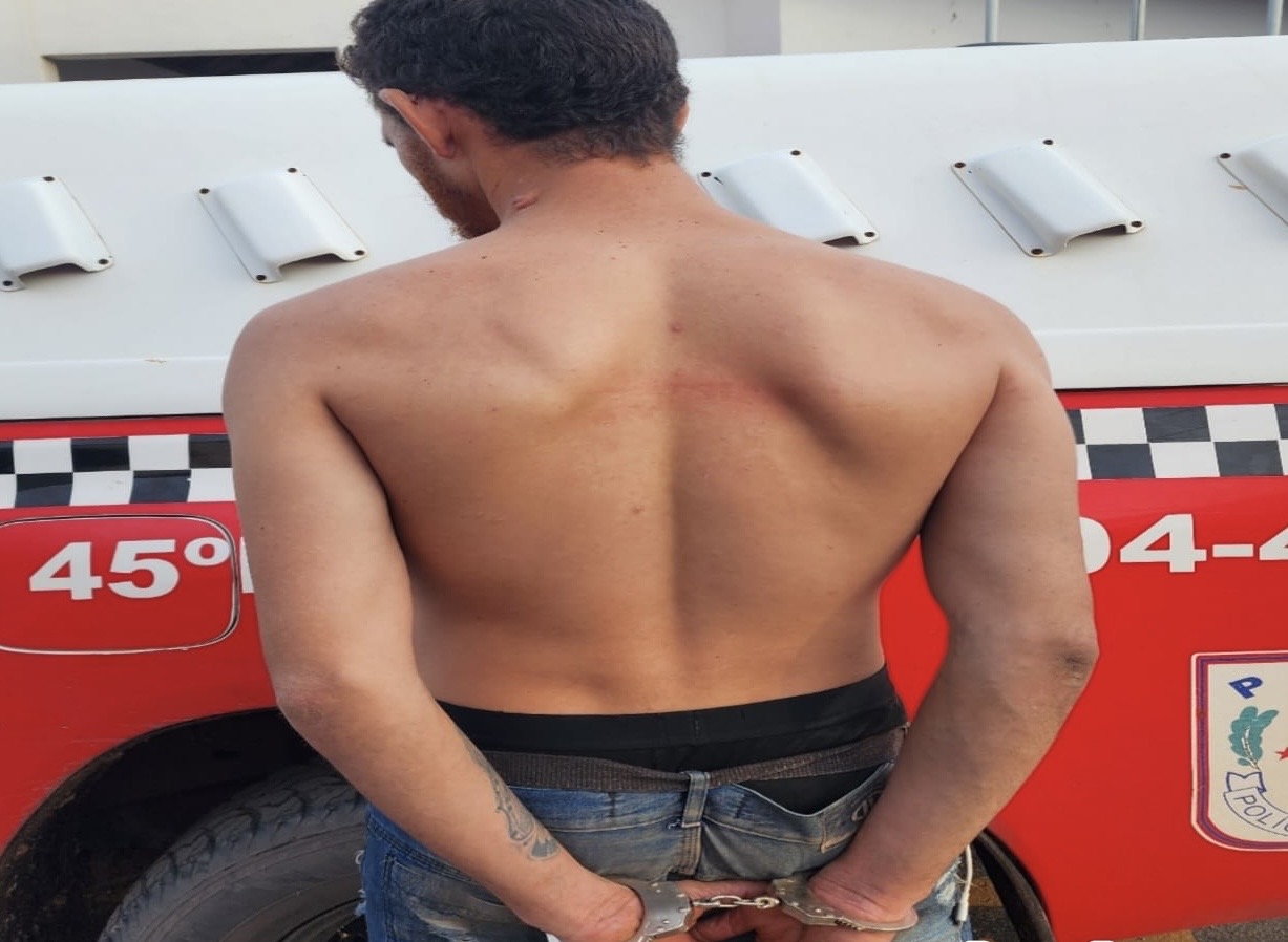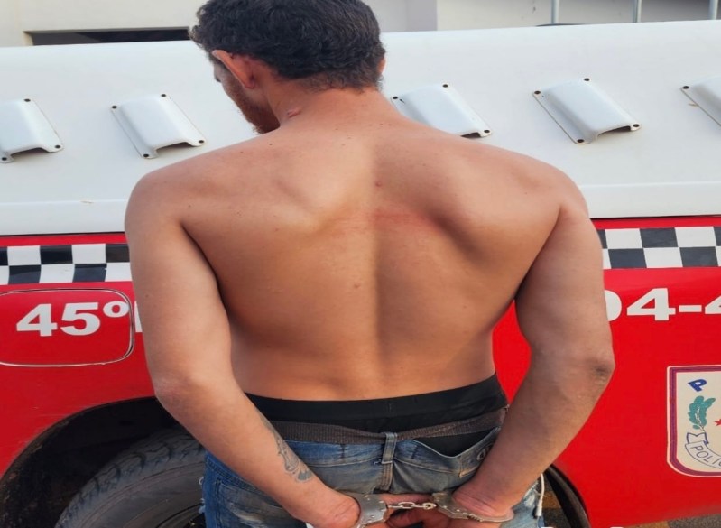 Devido à tentativa de fuga do indivíduo durante a abordagem, foi necessário o uso de algemas para garantir a segurança da operação e a ordem no local.