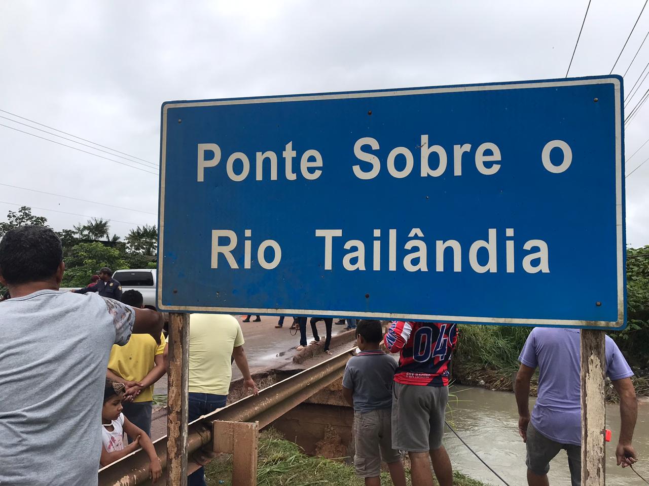 A ponte sobre o rio Tailândia foi interditada parcialmente pela polícia e Corpo de Bombeiros. A chuva causou erosão na cabeceira da ponte, causando risco de rompimento da estrada.