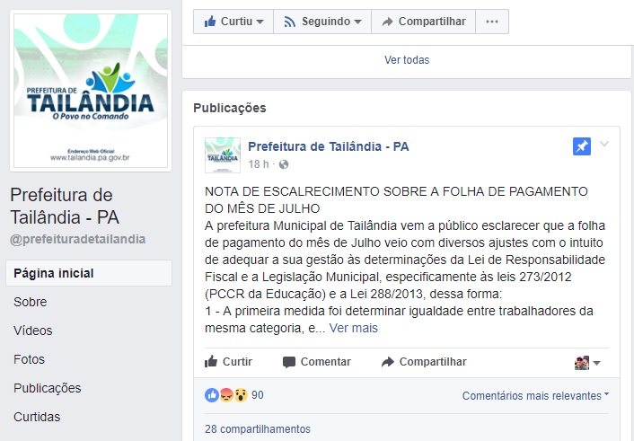 A prefeitura Municipal de Tailândia vem a público esclarecer que a folha de pagamento do mês de Julho veio com diversos ajustes com o intuito de adequar a sua gestão às determinações da Lei de Responsabilidade Fiscal e a Legislação Municipal, especificamente às leis 273/2012 (PCCR da Educação) e a Lei 288/2013, dessa forma:
