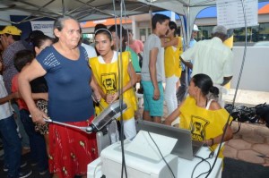 Na fila dos exames estava a professora de História Marcilene Veloso, que aproveitou o dia letivo para observar os alunos e também fazer alguns exames. “Já fiz glicose e agora estou verificando o meu peso. Vou trazer a minha filha de tarde pra tirar a carteira de identidade. Acho um projeto excelente porque às vezes é difícil o acesso para tirar documentos. Dessa forma, fica bem mais fácil, principalmente para as pessoas menos favorecidas”, relatou a professora.