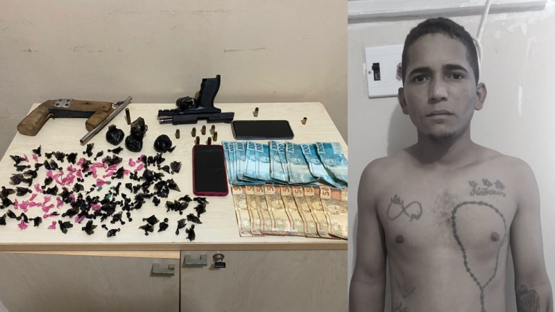 Foram apreende uma quantidade significativa de oxi, dinheiro em espécie, uma arma caseira e uma pistola ponto 40, municiada.