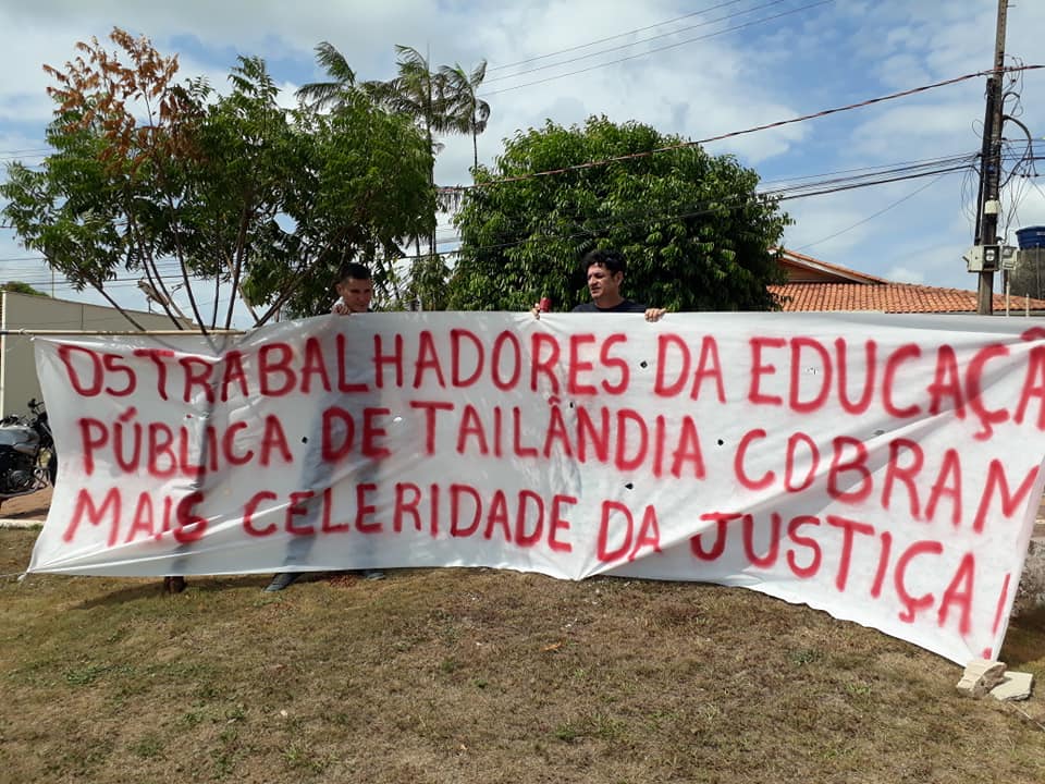 O Sindicato dos Trabalhadores em Educação Pública do Estado do Pará (Sintepp), subsede Tailândia, nordeste do Pará, realizou das 8h às 12h um manifesto em frente ao Fórum da cidade, cobrando rapidez em ações da categoria que tramitam na Comarca do município.