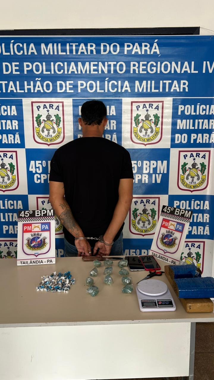 Uma ação do 45º Batalhão de Polícia Militar resultou na prisão de um homem e na apreensão de uma quantidade expressiva de drogas na manhã desta sexta-feira (30), em Tailândia, nordeste paraense.