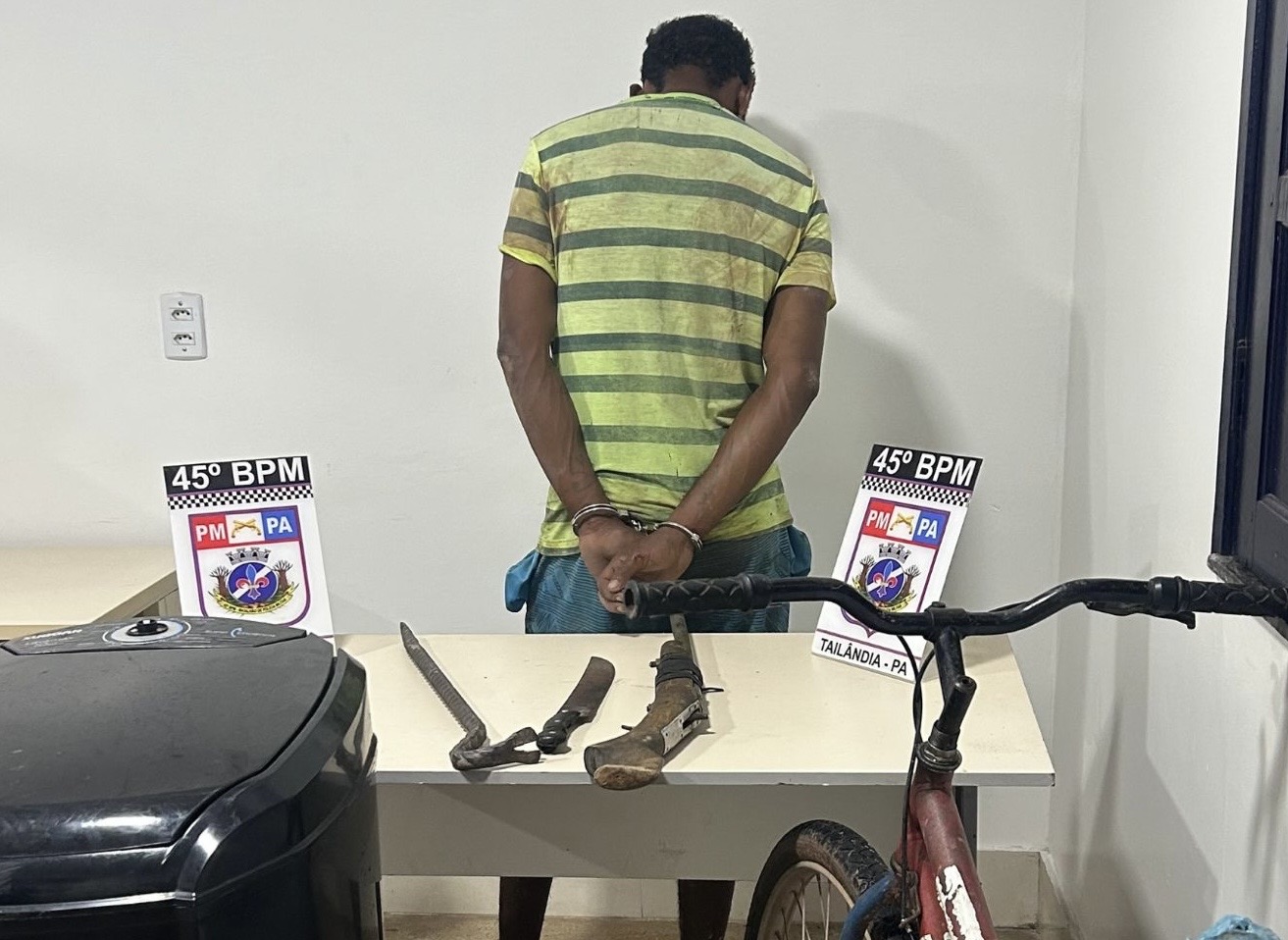 Devido à agressividade e ao alto risco de nova fuga, o elemento foi conduzido algemado à Delegacia de Polícia Civil para os procedimentos cabíveis.