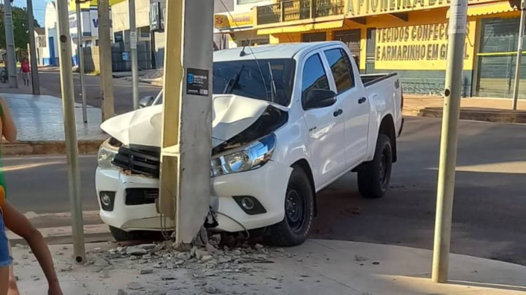 Internautas registram uma caminhonete colidida com um poste no centro de Tailândia, nordeste do Pará, neste domingo (9).