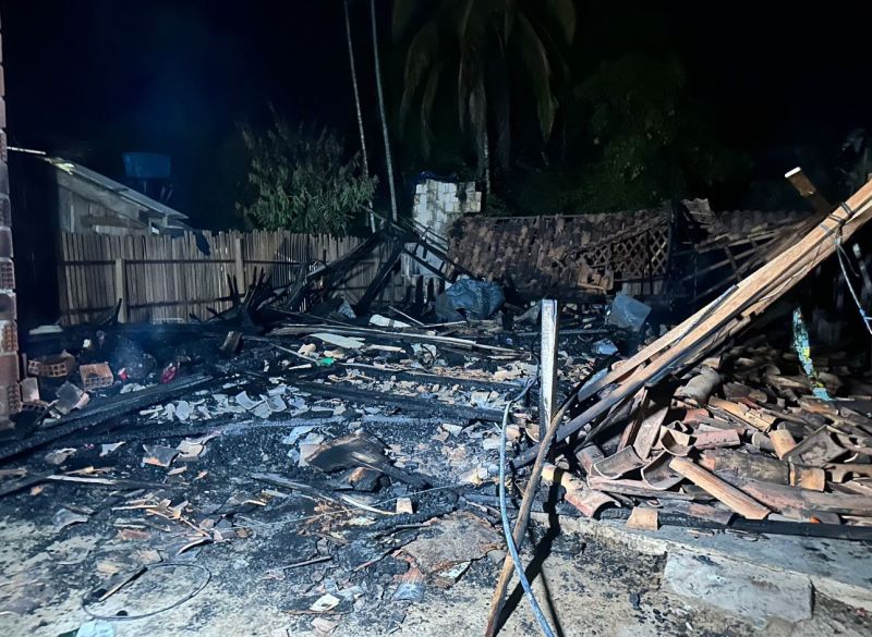 Um incêndio consumiu completamente a casa de Oziel Almeida, morador do bairro de Fátima 1 em Tailândia, nesta sexta-feira (01). As chamas foram causadas por um problema na parte elétrica da residência.