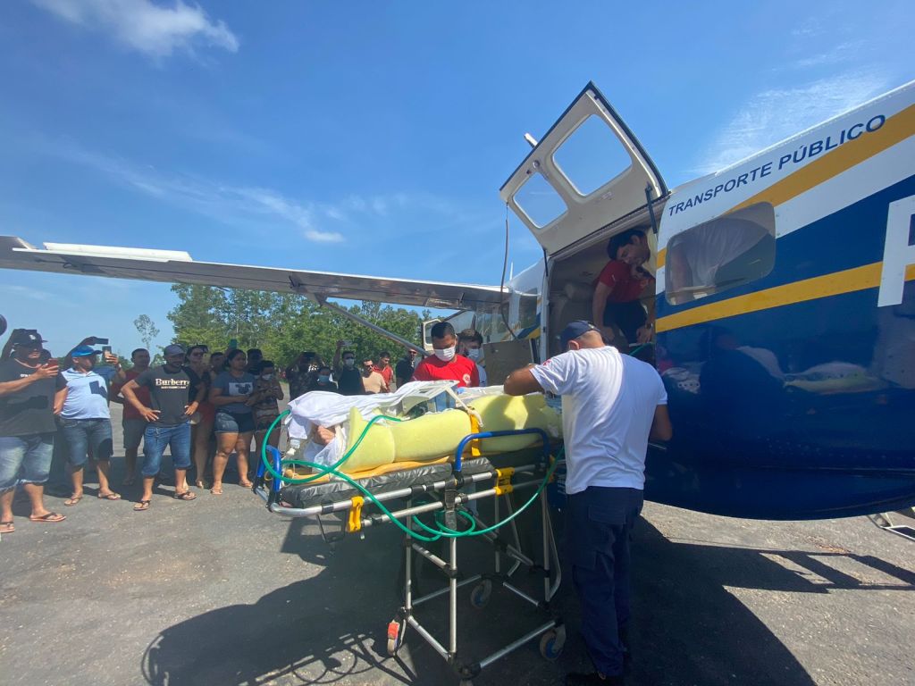 O trabalhador foi transferido de forma urgente, via aeromédico, na manhã deste domingo (21) para o hospital Metropolitano. O estado de saúde é considerado grave, o paciente respira com ajuda de aparelhos.
