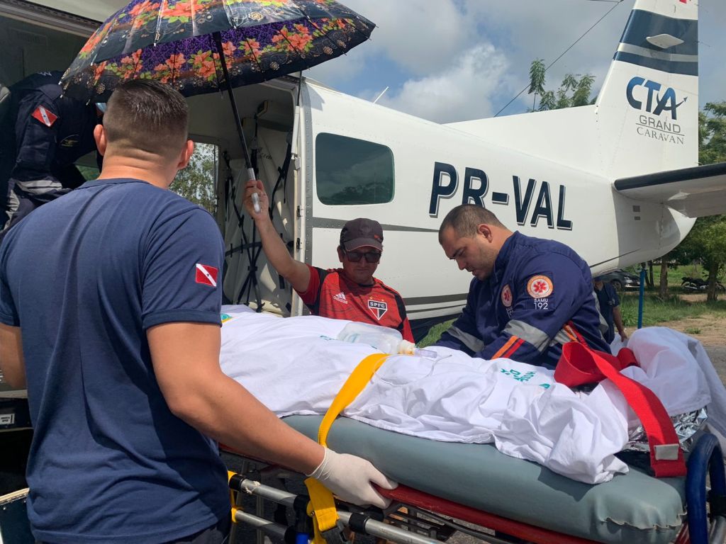 A paciente estava há uma semana no município, de onde veio visitar filhos e netos. No momento do embarque á Belém, no aeromédico, a mulher estava estável.