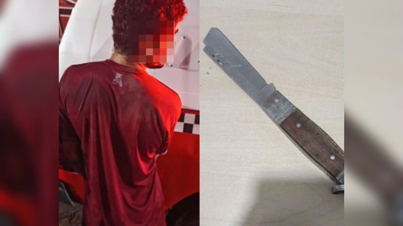 O suspeito e a faca foram apresentados na Delegacia de Polícia Civil para os procedimentos cabíveis.