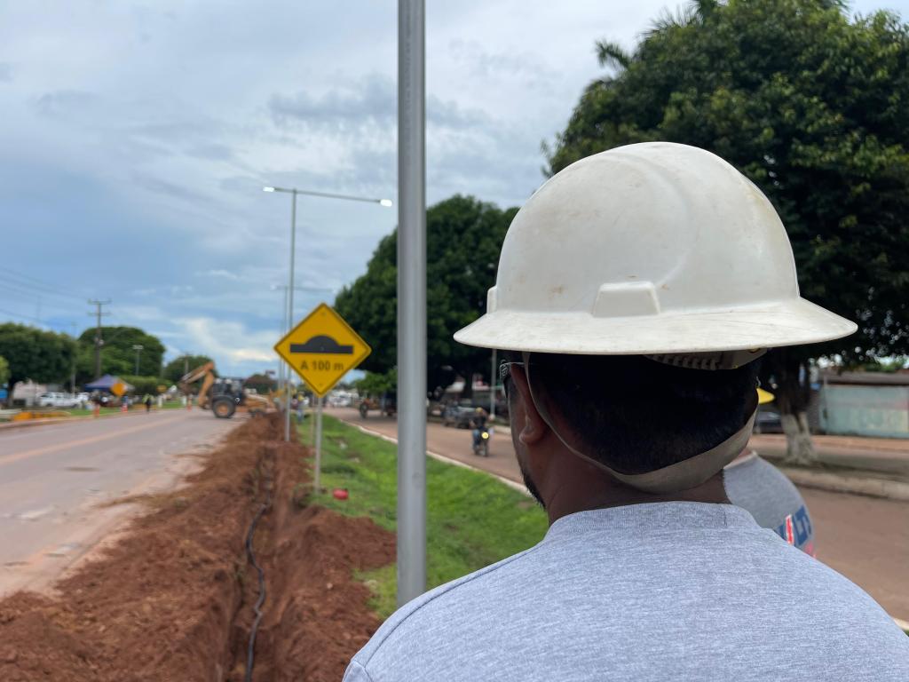 A rodovia PA-150, dentro do perímetro urbano de Tailândia, nordeste do Pará, recebe serviços para estruturação de uma nova iluminação pública nesta quarta-feira (06).