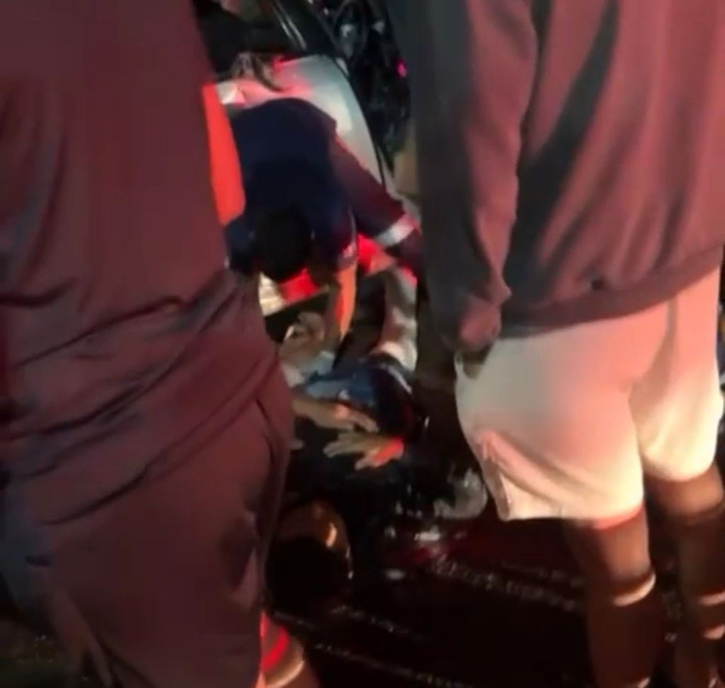 Equipes de resgate foram acionadas e prestaram os primeiros atendimentos à vítima, que não teve a identidade divulgada. A vítima foi encaminhado ao Hospital Geral de Tailândia (HGT).