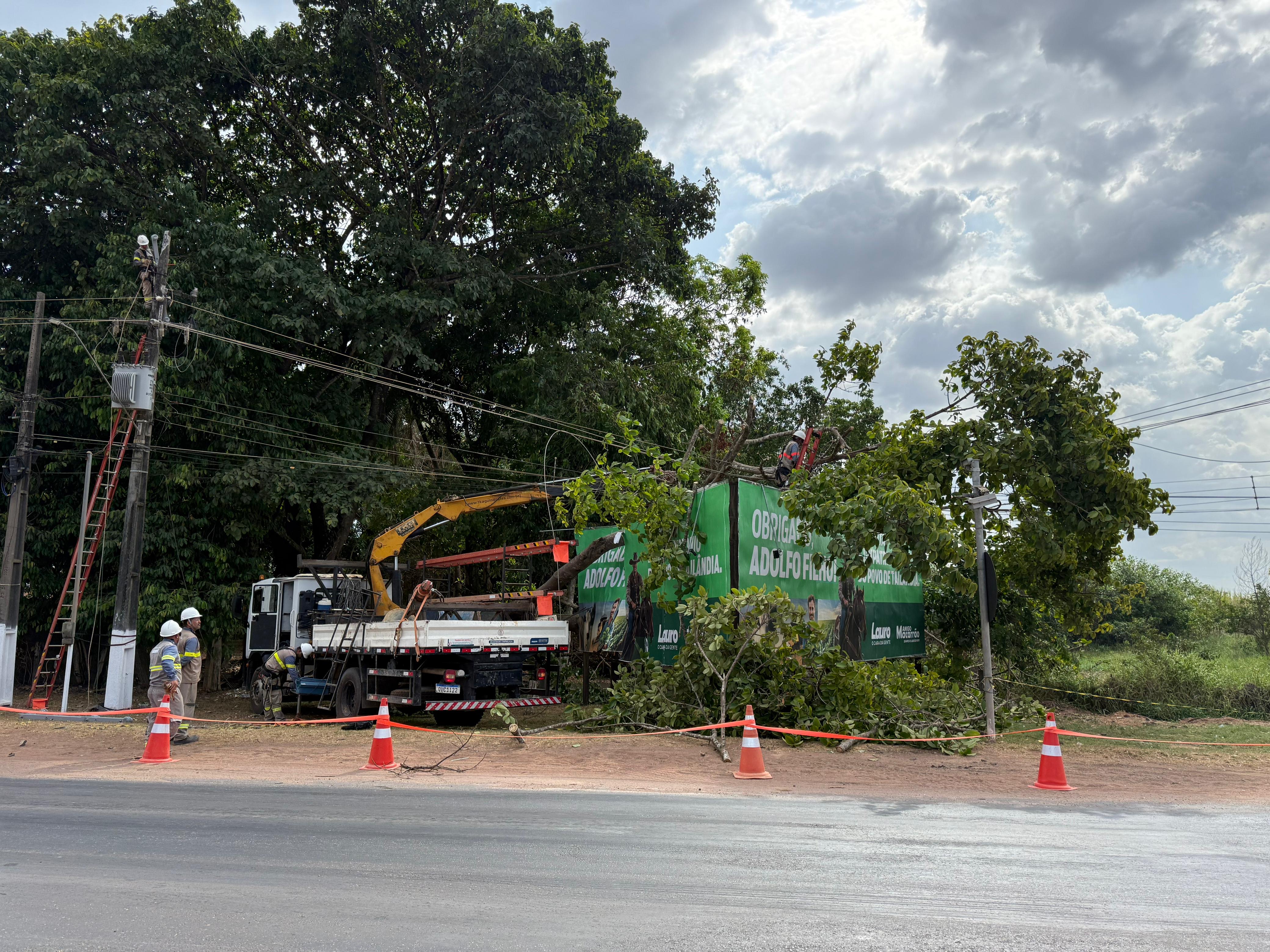 Vários bairros em Tailândia, nordeste do Pará, sofreram com quedas de energia durante a tarde desta quarta-feira (24), após a parte de uma árvore quebrar e romper uma fiação elétrica.