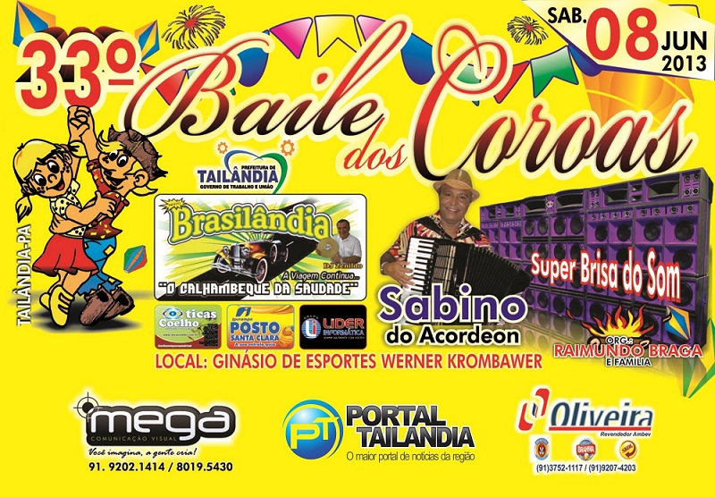 E não para por aí, o 33º Baile dos Coroas de Tailândia apresenta ainda Sabino do Acordeon, cantor do gênero musical conhecido como forró de pé de serra. Sabino, já tocou de norte a sul, leste a oeste, inclusive fora do Brasil, e conserva a mesma simplicidade nordestina de suas origens e o grandioso talento musical que arrasta multidões pelos shows afora.